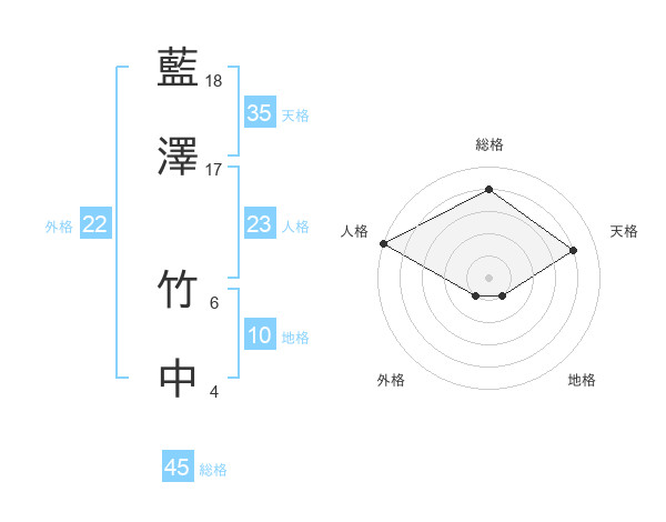 藍澤 竹中さんの総格は45画の4点!
