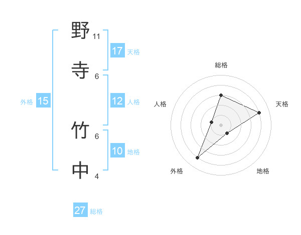 野寺 竹中さんを姓名の画数から五運を鑑定