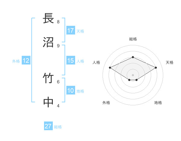 長沼 竹中さんの総格は27画の3点!
