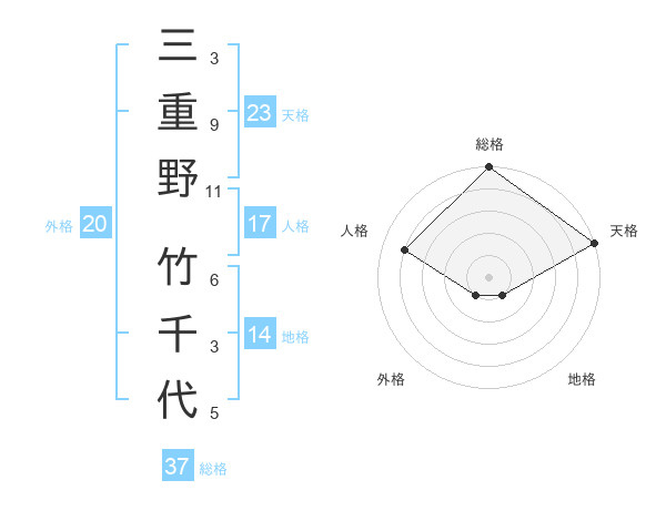 三重野 竹千代さんを姓名の画数から五運を鑑定