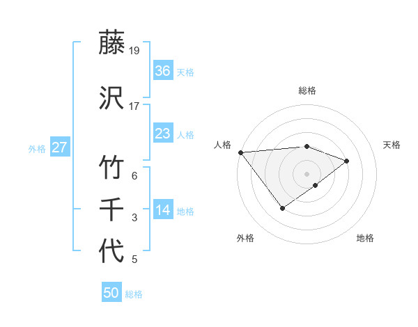 藤沢 竹千代さんの総格は50画の2点!