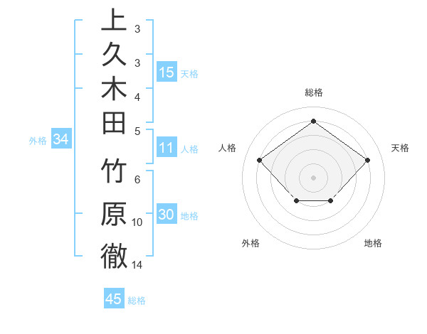 上久木田 竹原徹さんを姓名の画数から五運を鑑定