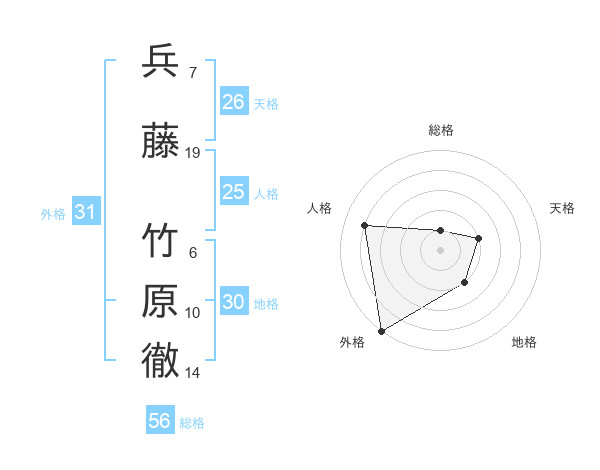 兵藤 竹原徹さんを姓名の画数から五運を鑑定