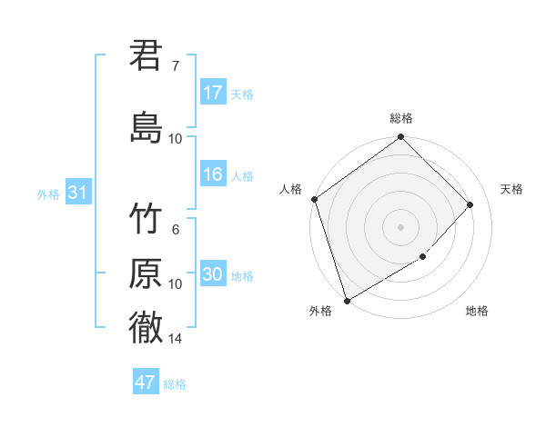 君島 竹原徹さんの総格は47画の5点!