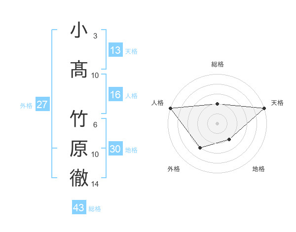 小髙 竹原徹さんを姓名の画数から五運を鑑定