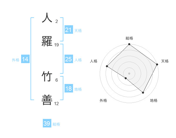 人羅 竹善さんを姓名の画数から五運を鑑定