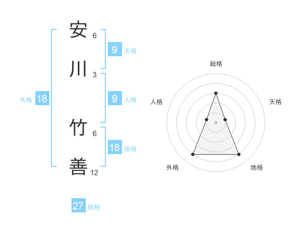 安川 竹善さんの総格は27画の3点!