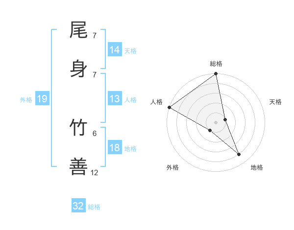 尾身 竹善さんの総格は32画の5点!