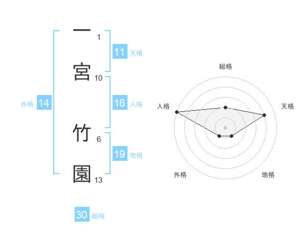 一宮 竹園さんを姓名の画数から五運を鑑定