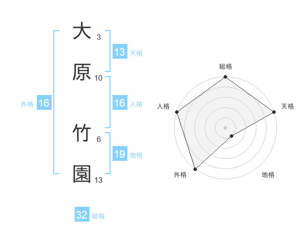 大原 竹園さんの天格は13画の5点!