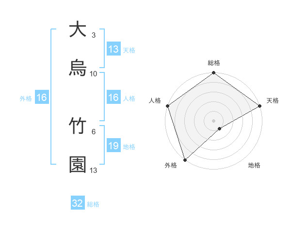 大烏 竹園さんの総格は32画の5点!