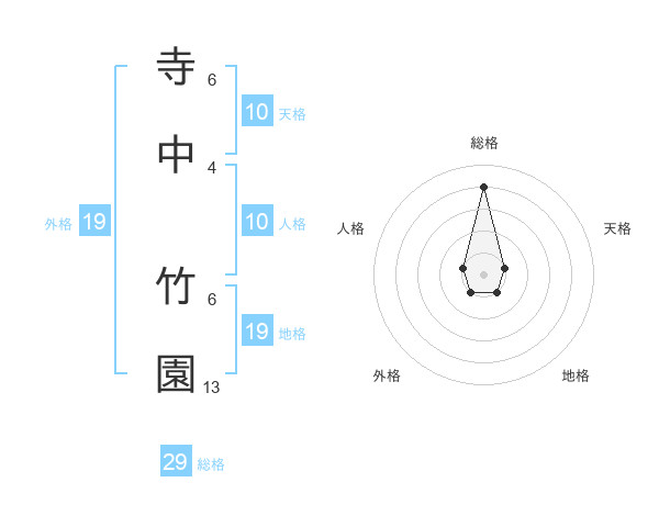 寺中 竹園さんの総格は29画の4点!