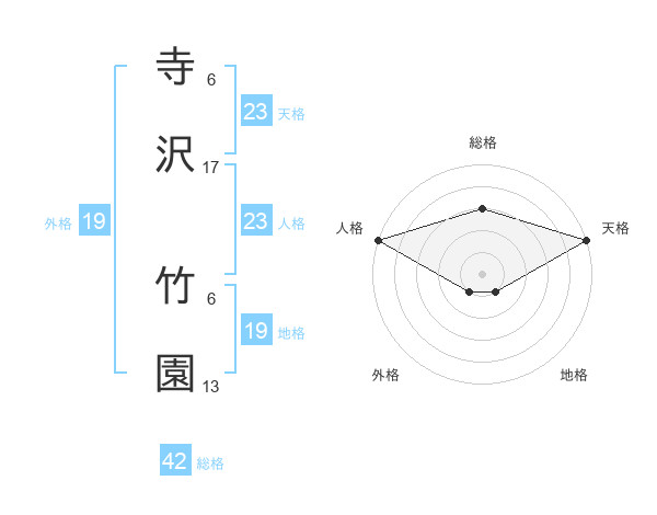 寺沢 竹園さんの総格は42画の3点!