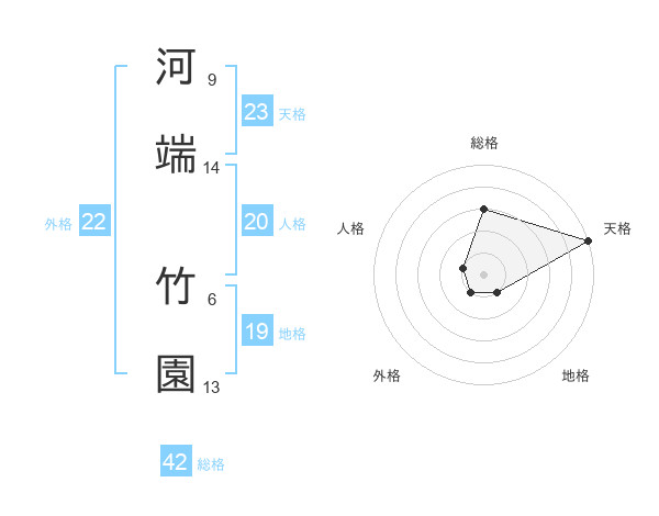 河端 竹園さんの天格は23画の5点!