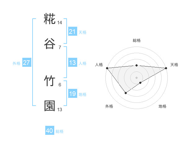 糀谷 竹園さんの総格は40画の2点!