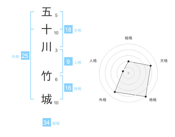 五十川 竹城さんの総格は34画の2点!