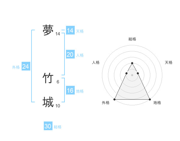 夢 竹城さんの総格は30画の2点!