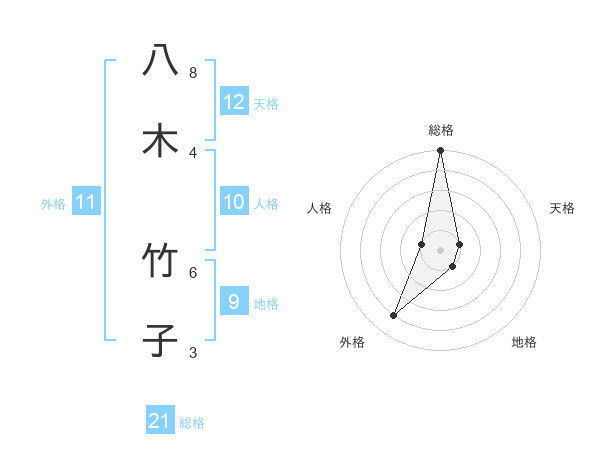 八木 竹子さんの総格は21画の5点!