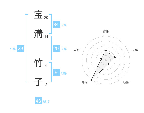 宝溝 竹子さんの総格は43画の2点!