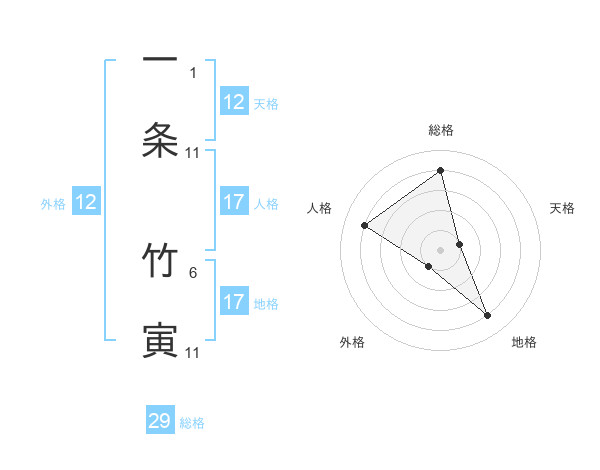 一条 竹寅さんを姓名の画数から五運を鑑定