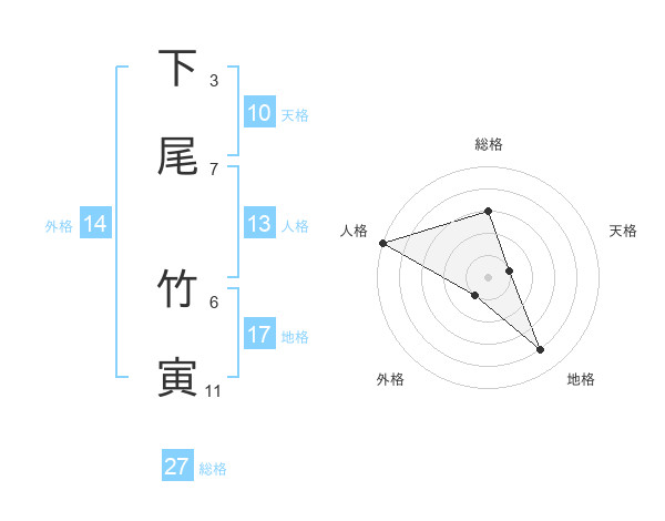 下尾 竹寅さんの総格は27画の3点!