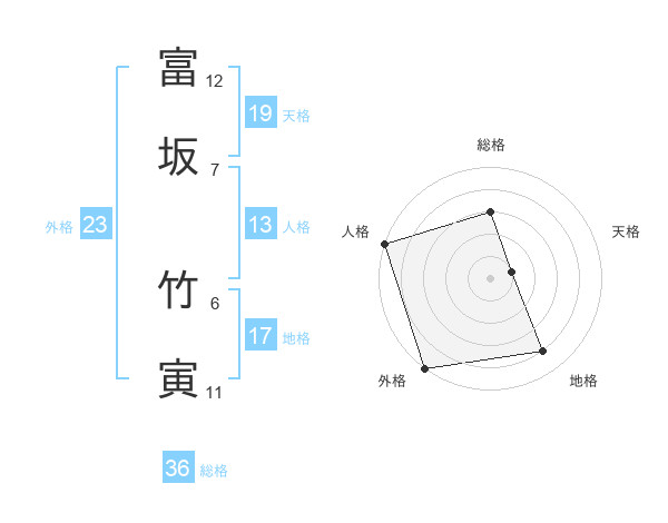 富坂 竹寅さんの天格は19画の1点!