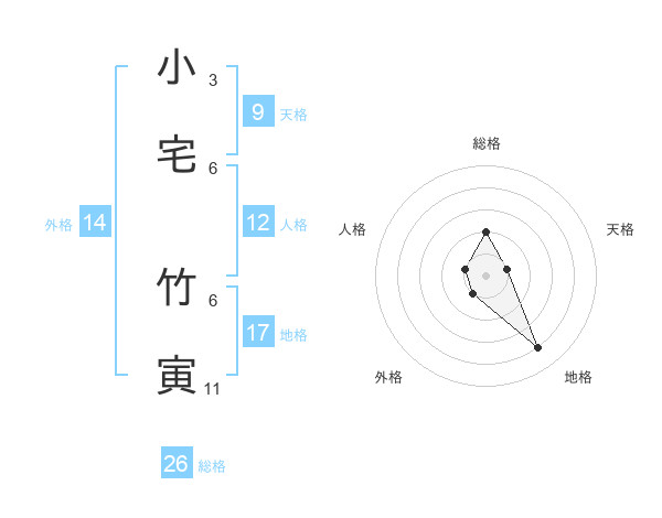 小宅 竹寅さんを姓名の画数から五運を鑑定