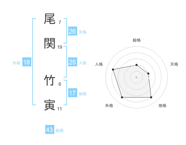 尾関 竹寅さんを姓名の画数から五運を鑑定