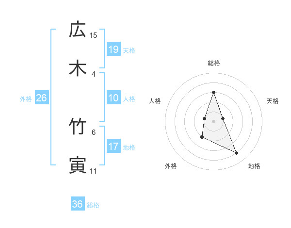 広木 竹寅さんの総格は36画の3点!