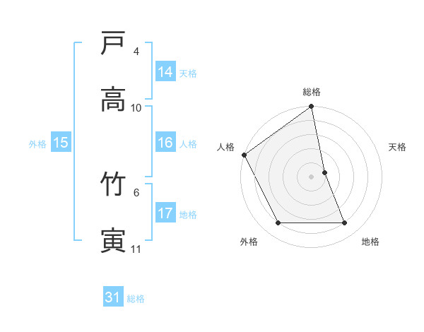 戸高 竹寅さんを姓名の画数から五運を鑑定