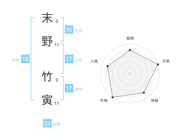 末野 竹寅さんを姓名の画数から五運を鑑定
