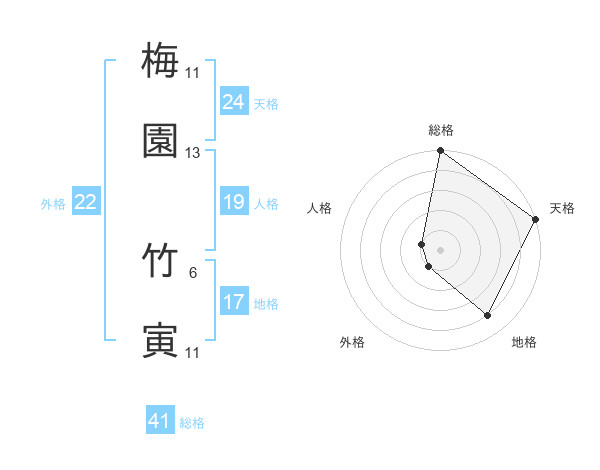 梅園 竹寅さんの総格は41画の5点!