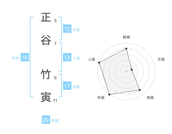 正谷 竹寅さんの総格は29画の4点!