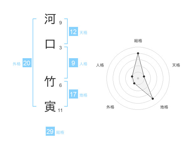 河口 竹寅さんの総格は29画の4点!