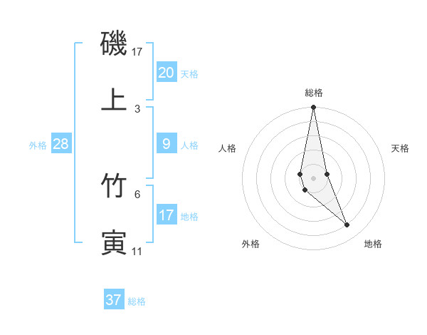 磯上 竹寅さんを姓名の画数から五運を鑑定