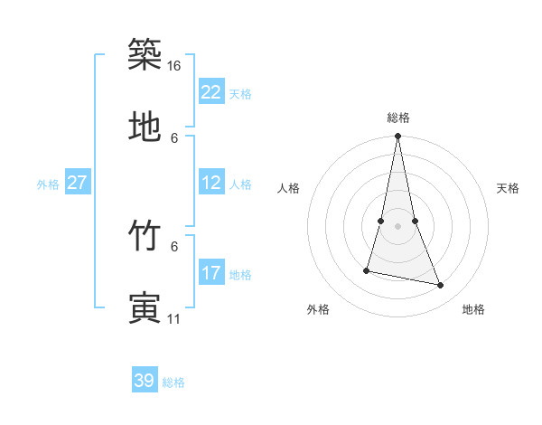 築地 竹寅さんの総格は39画の5点!