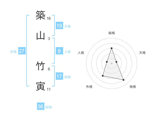 築山 竹寅さんの総格は36画の3点!