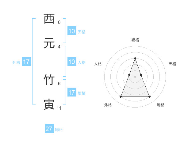 西元 竹寅さんの総格は27画の3点!