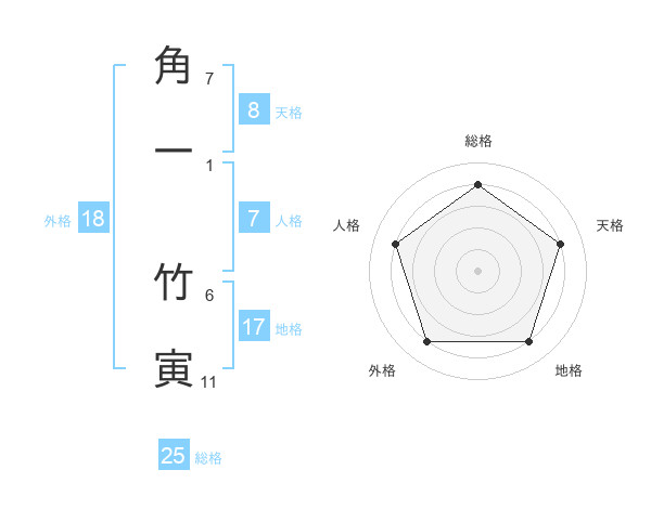 角一 竹寅さんを姓名の画数から五運を鑑定