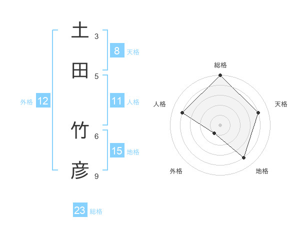 土田 竹彦さんを姓名の画数から五運を鑑定