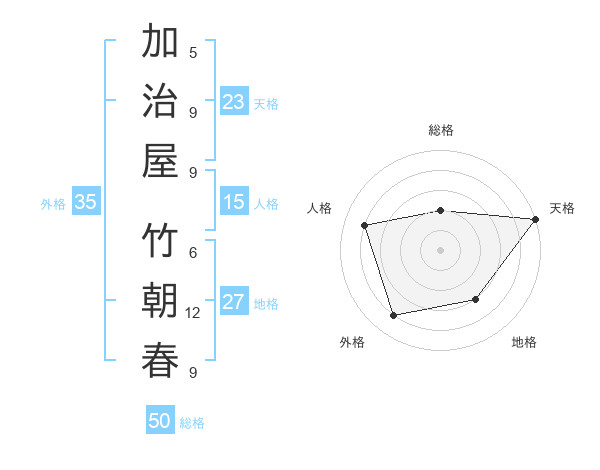 加治屋 竹朝春さんの天格は23画の5点!