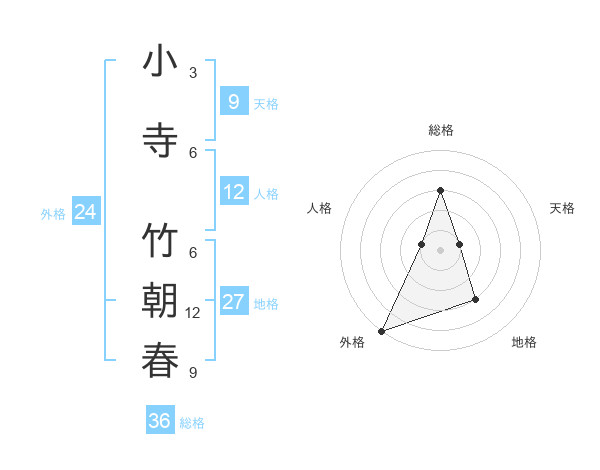 小寺 竹朝春さんの総格は36画の3点!