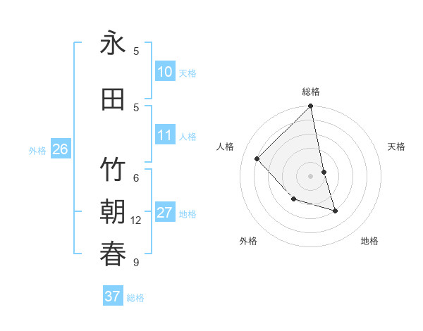 永田 竹朝春さんを姓名の画数から五運を鑑定