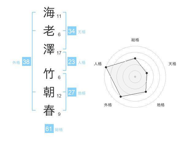 海老澤 竹朝春さんを姓名の画数から五運を鑑定
