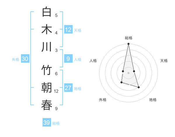 白木川 竹朝春さんの総格は39画の5点!
