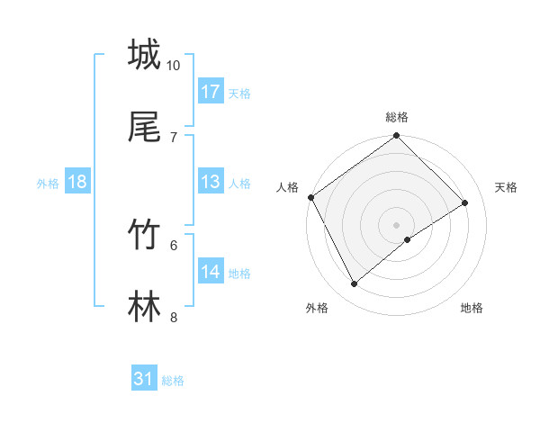 城尾 竹林さんの総格は31画の5点!