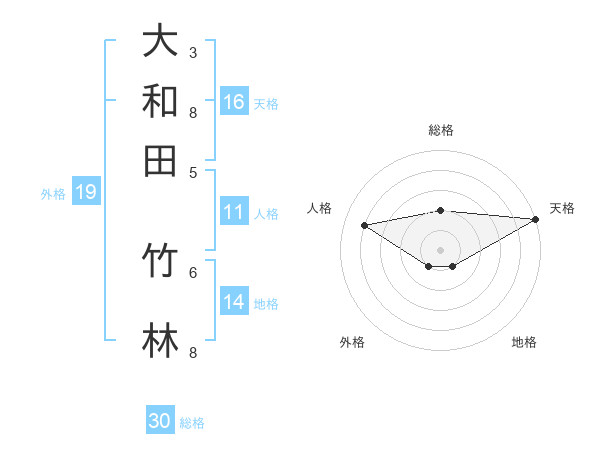 大和田 竹林さんの総格は30画の2点!