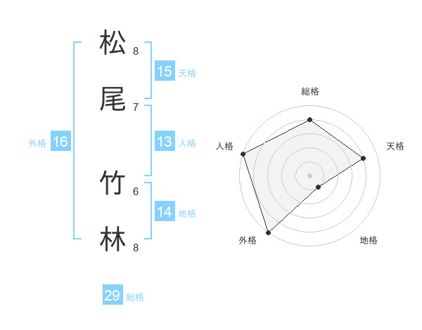 松尾 竹林さんの総格は29画の4点!