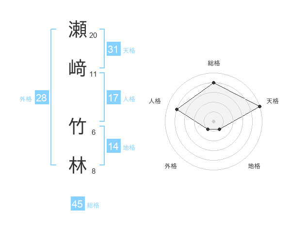 瀬﨑 竹林さんの総格は45画の4点!