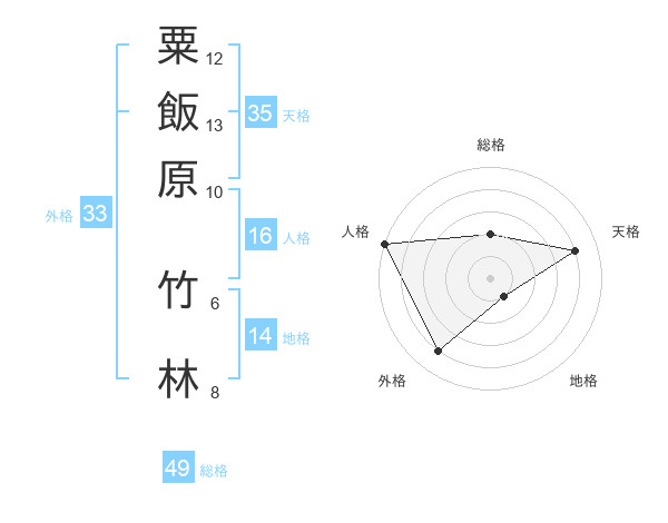 粟飯原 竹林さんを姓名の画数から五運を鑑定